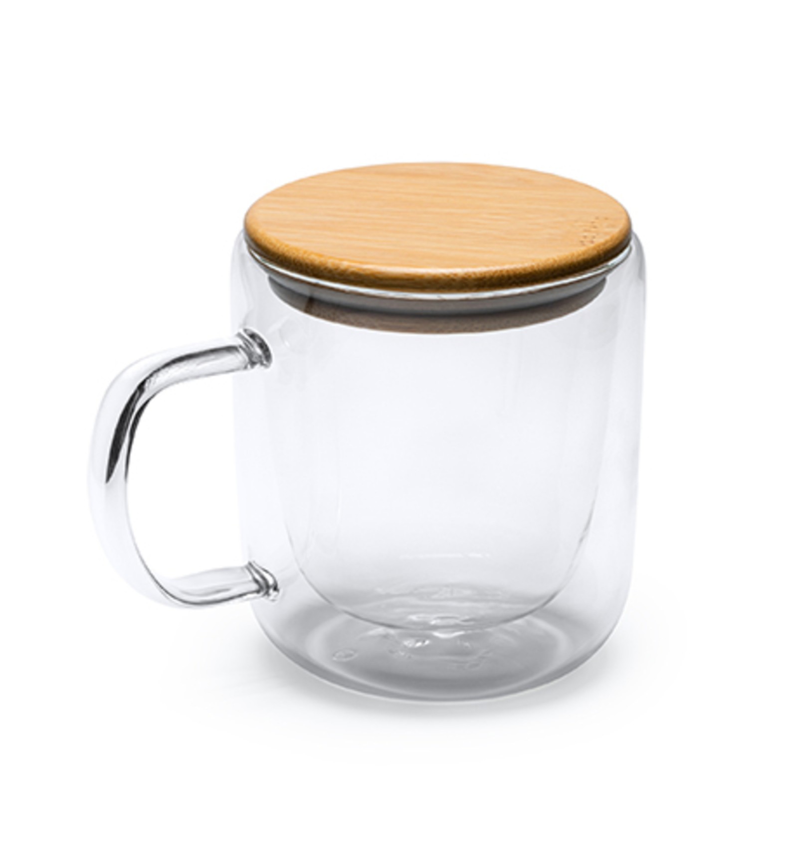 Cană cu perete dublu din sticlă borosilicată cu capac din bambus. Capacitate de 280 ml.