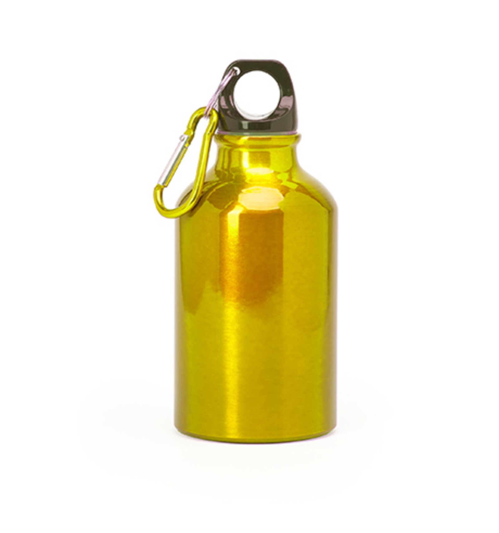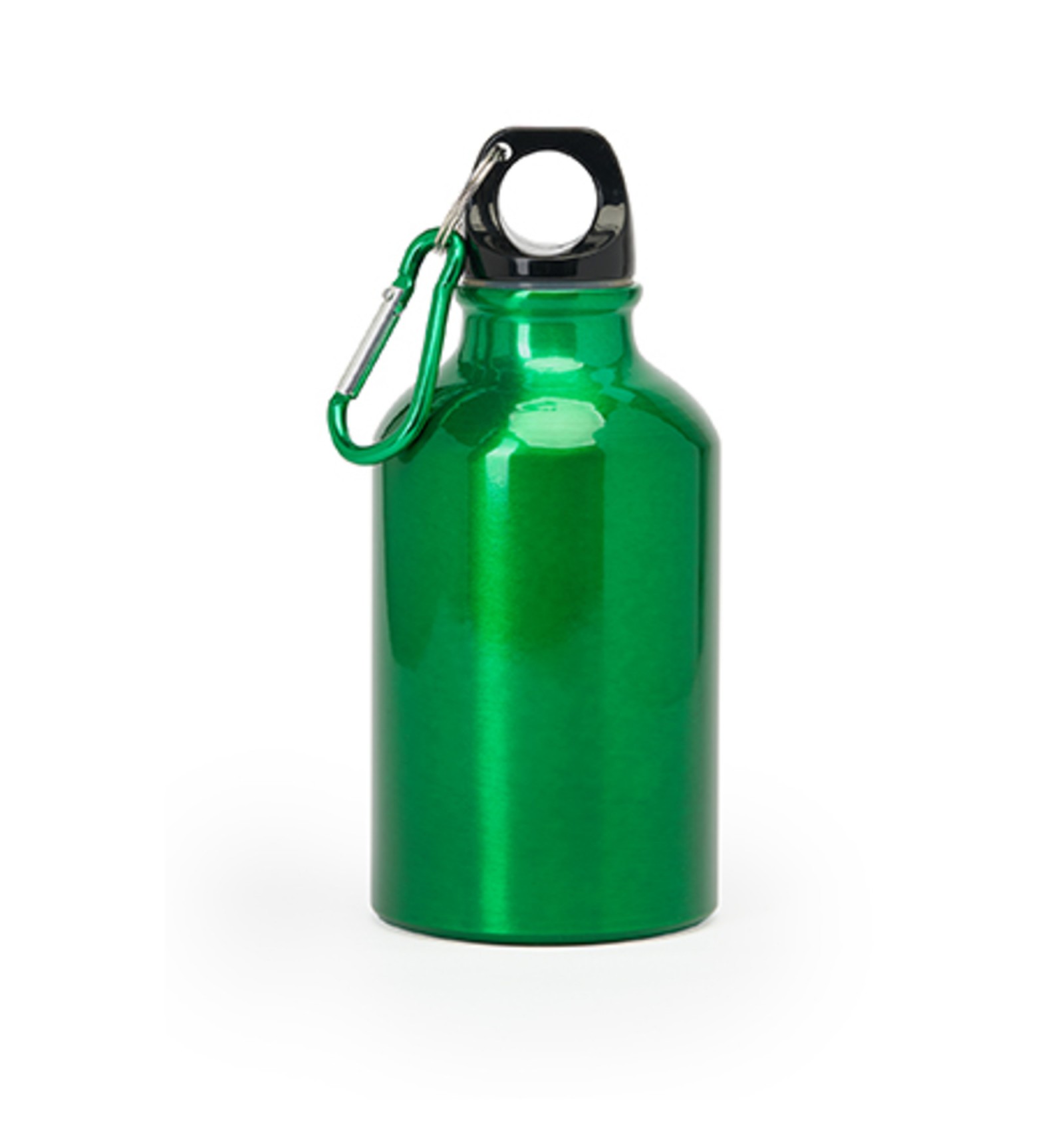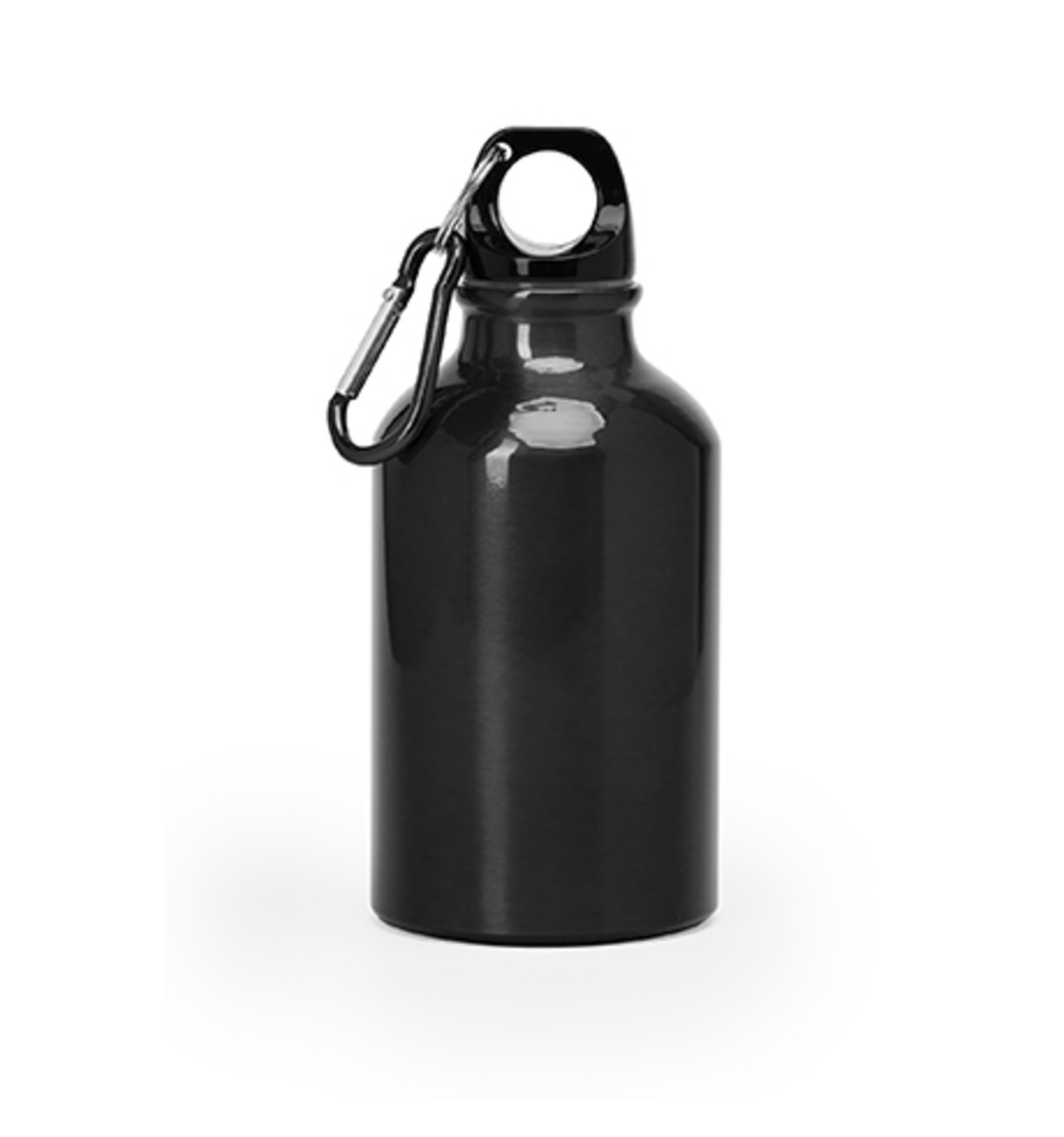 Bidon de aluminiu cu carabină. Dop negru și carabină de aceeași culoare metalică, la fel ca și sticla. Capacitate 330 ml.
