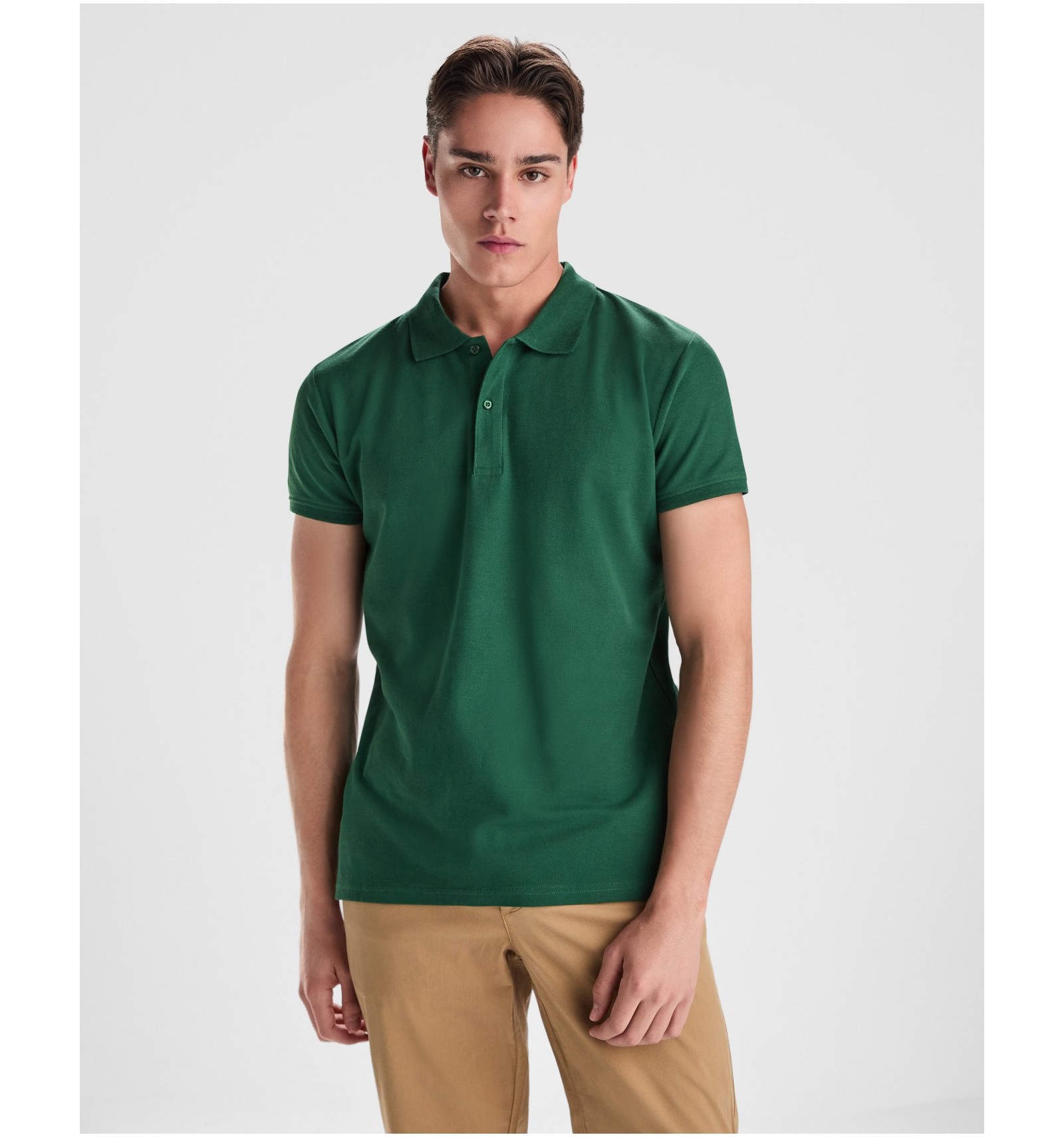 Tricou polo cu mânecă scurtă din bumbac ecologic certificat OCS. 1x1 guler și manșete cu striații. Buzunar cu 2 nasturi. Cusături acoperite întărite la guler. Fante laterale pe tiv. Buzunar opțional.