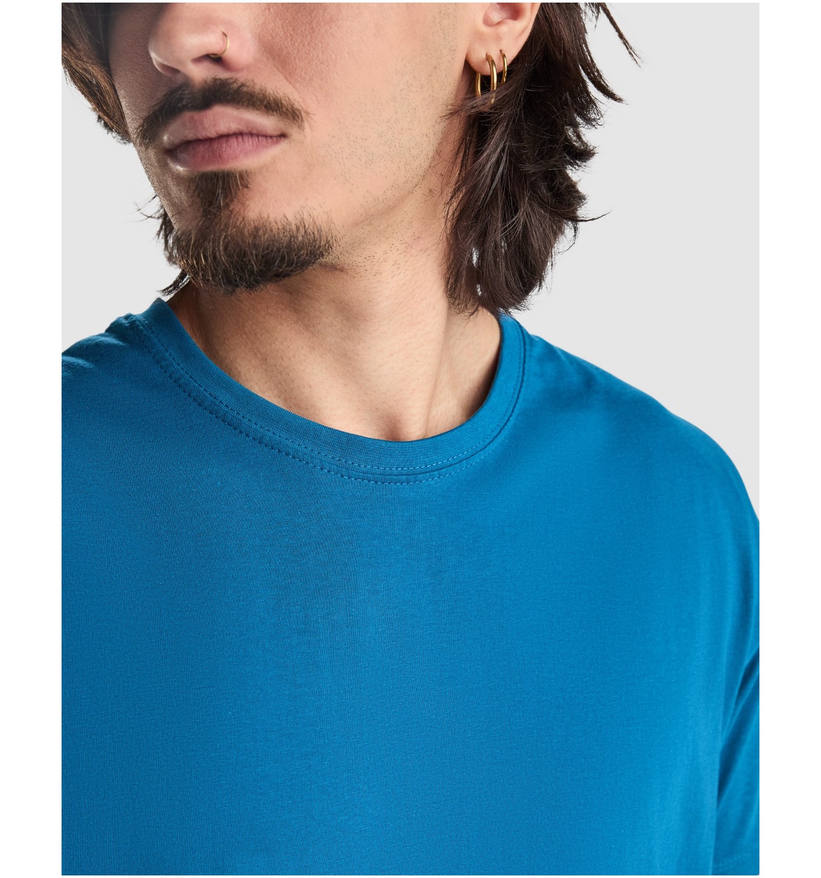 Tricou cu mânecă scurtă confecționat din material tubular pentru adulți și cu cusături laterale pentru copii. Guler rotund cu nervuri 1x1. Cu bandă asortată întărită pentru acoperirea cusăturii la guler.